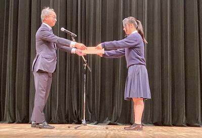 代表は文化委員長の山田さん、郷土芸能部で三味線を頑張っている西薗さんでした。