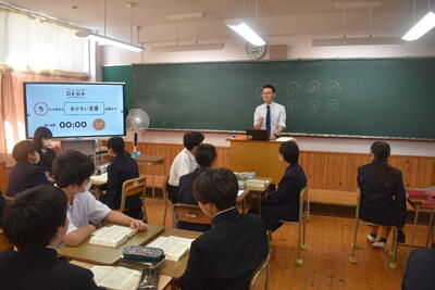 1月9日(木)、肥後銀行牛深支店の中原様(本校卒業生)を講師にお迎えして3年次生を対象に金融教育セミナーを実施しました。社会人になる前に金融(マネー)に関する知識を正しく知ることで、将来にわたって主体的に考え、豊かな生活を送っていけることを目的として開催しました。