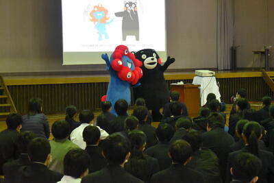 また、来年度創立10周年の節目を迎える牛深高校の目指していく姿を生徒たちに伝えられました。ウォルトディズニーが「ディズニーランドはまだ未完成である」という言葉を遺したことを例に、牛深高校も未完成であり、これからますます進化し続けましょうというお話がありました。