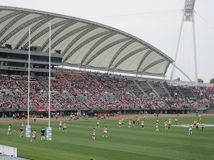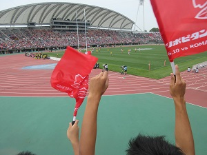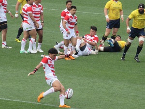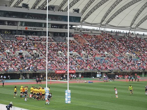初めてラグビーの試合を見た生徒。最前列で観戦し、選手同士がぶつかりあいながらも、ボールを必死で追いかける姿、迫力、すべてに圧倒された時間でした。