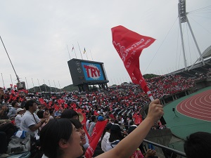 スタンド席から、3年次の代表、各年次の体育委員を中心に、さまざまな応援歌やかけ声で選手を応援しました。