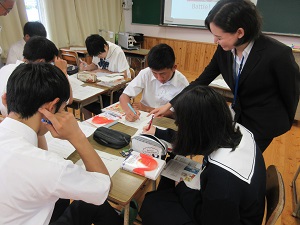 22(木)には、1年次コミュニケーション英語Ⅰの研究授業を行い、実習の成果を発揮していました。生徒たちもグループでの活動など、一生懸命に取り組みました。