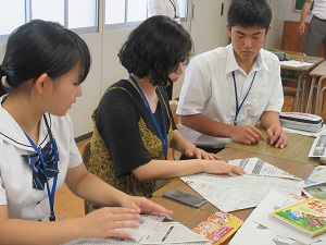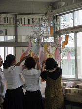 学生のみなさんの願いごとを聞いて、本校生徒がお手本を書き、最後に一緒に短冊を吊るしました。緊張していた生徒もすぐに打ち解け、名残惜しそうでした。