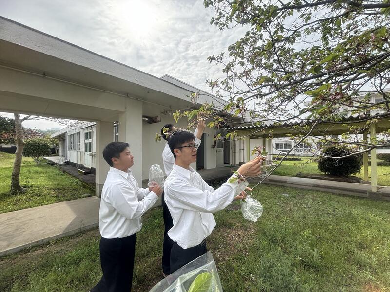 4月17日に校内にある桜の木から、新しい柔らかい葉を収穫しました。一枚一枚丁寧に処 理し、塩漬けにしました。