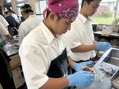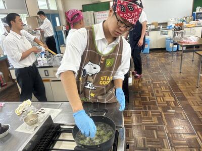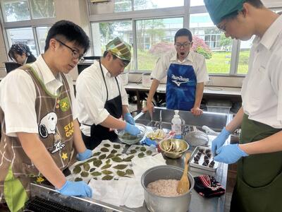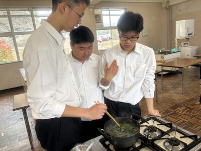 初めて桜の葉の塩漬けから桜餅を作る生徒が多かったですが、楽しく興味深そうに作ることができていました。 桜の葉の香りが苦手な生徒も、友人や家族に「おいしい!」と言ってもらい嬉しかったと感想を述べていました。校内にあるものを活用し、季節や旬を感じてもらう実習をこれからも実施していきたいと思います。