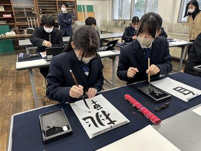 普段から書道の授業を選択している生徒は慣れた様子でしたが、久しぶりの生徒も多く、何回も書き直す姿がありました。
