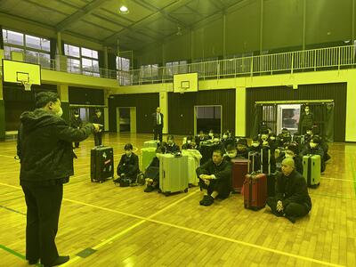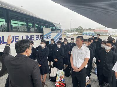 午前7時に2年次生全員元気に集合し、出発式を終えました!