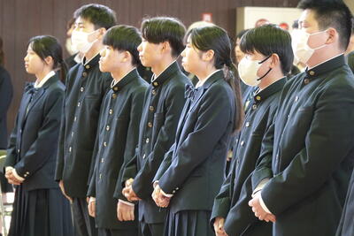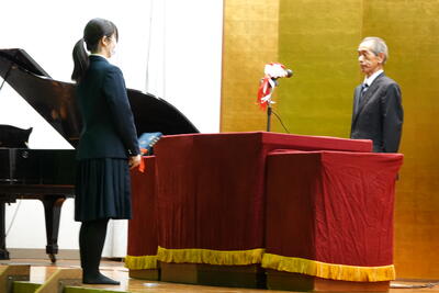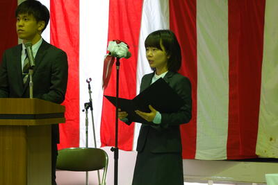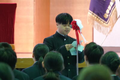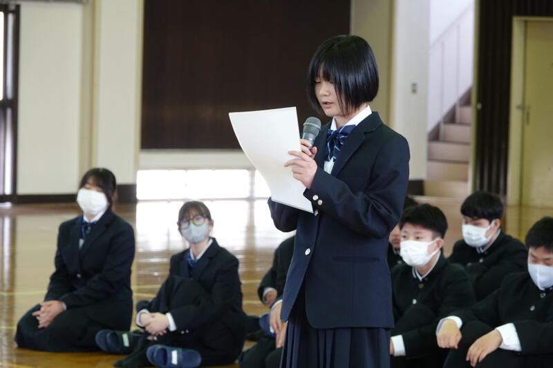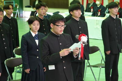 生徒会長の歓迎の言葉を受けた後に、新入生の代表が高校入学にあたっての抱負を元気よく発表しました。