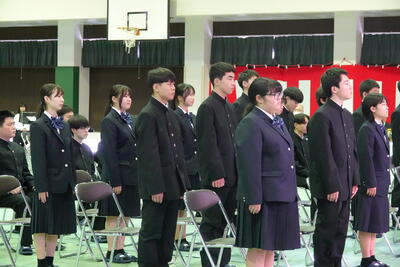 12月20日(水)第34回熊本県高等学校郷土芸能・吟詠剣詩舞発表会がウイングまつばせ(宇城市)で行われました。郷土芸能部は牛深ハイヤ節を、2年次生の濵中君が吟詠を披露しました。
