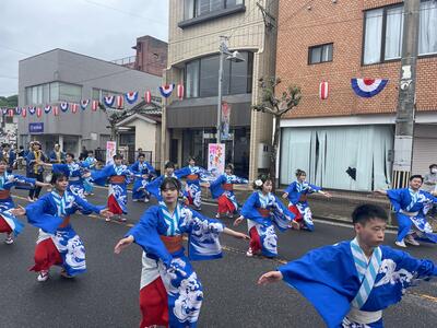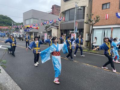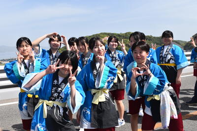 また、土曜日には郷土芸能部が屋外ステージで「牛深ハイヤ節」を披露しました。そして最終日の日曜日には様々な団体が商店街を練り歩く総踊りに郷土芸能部と生徒・職員の有志が参加しました。
