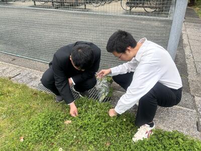 4月11日に校内に自生しているよもぎの葉を摘み、下処理(あく抜き)をして保存しました。