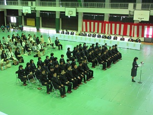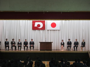 代表生徒からクラスに記念品が贈呈されたあと、生徒会執行部の紹介、部活動紹介が行われました。委員会活動や部活動にも積極的に取り組んでほしいと思います。