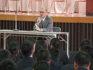最後の研修は、「校長先生による講話」でした。「47人それぞれが夢、目標を持ち、志高く、夢に向かっていきいきと生きる生徒になってほしい」と熱く語られていました。