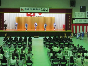 式後には、郷土芸能部の牛深ハイヤ節のアトラクションがあり、門出を祝いました。