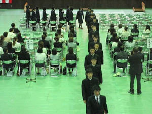 生徒会執行部を先頭に新入生が入場し、2年次生・3年生が拍手で出迎えました。