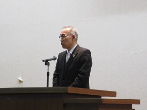 平田校長より「新学期に抱いている新たな決意を大切にしてほしい。3年次生は最終学年としてまた1期生として自分の目標進路に向かって努力してほしい。2年次生は、学校の中心となり、リーダーシップを発揮してほしい。『挑戦』をスローガンに、さまざまなことに意欲的に活動することが大切であり、ボランティア活動など自分にできることを行うことが人の助けとなり自分自身の成長にもつながる。」と述べられました。