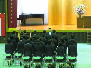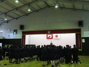 その後、牛高スピリッツ「明るいあいさつ・意欲的な活動・けじめのある生活」を全校生徒で復唱し、校歌を歌いました。