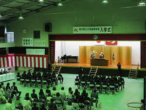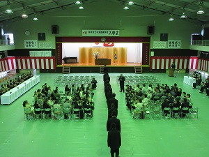 生徒会執行部を先頭に新入生が入場すると、2・3年次生が拍手で出迎えました。