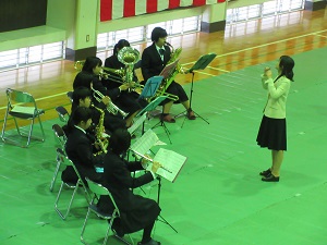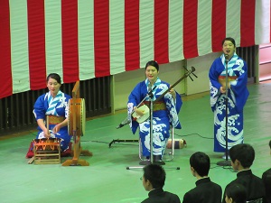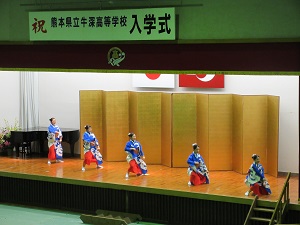 式後には、郷土芸能部の牛深ハイヤ節のアトラクションがあり、門出を祝いました。