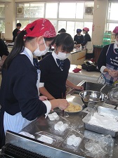 日本の風物詩である年末の餅つきも核家族化が進み、家庭で餅つきを行うところは減っています。そこでボウルで簡単にできる餅つきの方法を知ってもらい、日本の食文化の良さを再確認してほしいとの思いを込めて、毎年授業で取り組んでいます。