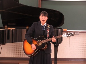 1月21日(火)、3年次器楽選択者による「卒業演奏会」が開かれました。「器楽」は、2・3年次での継続履修の科目で、2年間の学びの成果を披露しました。器楽選択者5名は、この発表会のために約1ヶ月間、選曲から練習に取り組んできました。先生方や同級生を前に、少し緊張した様子でしたが、ピアノのソロ演奏や連弾、ギターの弾き語りなどを最後まで一生懸命に演奏しました。