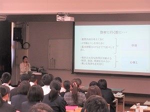 7月22日(月)に本校で就職希望者(3年次14名)を対象に就職ガイダンスが行われました。大原学園の草野幸栄子先生のご指導のもと、午前の部では労働基準法、就職環境、そして求人票の見方などを学びました。午後の部では自己紹介文をつくり、実際に模擬面接を行いました。受験者と面接官の両方を経験することで実践的な面接対応力を養うことができました。