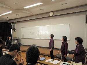 最後に、生徒どうしで絵本の読み聞かせを行い、アドバイスをしていただきました。3学期には、保育園での読み聞かせを行う予定です。