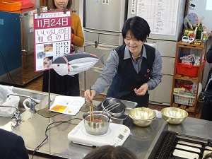 11月15日(金)、株式会社山一から林様を講師に迎え、3年次「食文化」選択者を対象に「お出汁教室」を行いました。