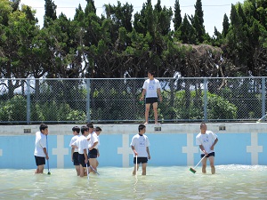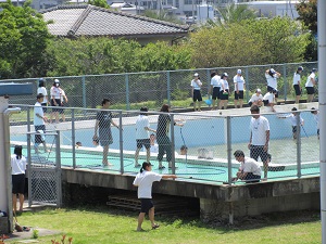総合体育大会(総体)には、陸上競技部、弓道部、卓球部(3年のみ)、サッカー部、バスケットボール部、女子バレーボール部、男子ソフトテニス部、バドミントン部(3年のみ)の8つの部活動が出場します。