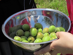 今日、収穫した梅で、梅シロップ、梅干し作りにチャレンジするそうです。