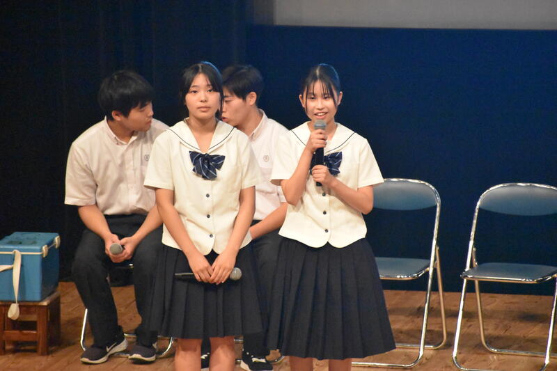 前半は生徒会執行部の生徒や協力生徒がそれぞれの出身中学の後輩たちに向けて、牛深高校についてプレゼンテーションをしました。