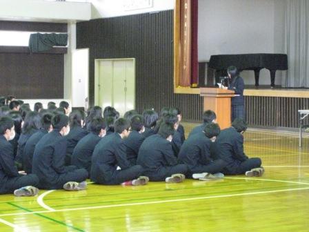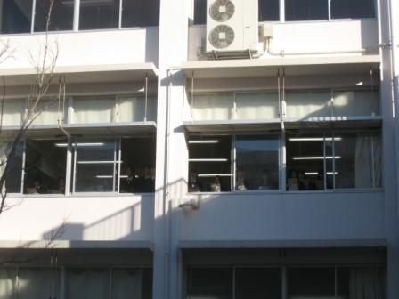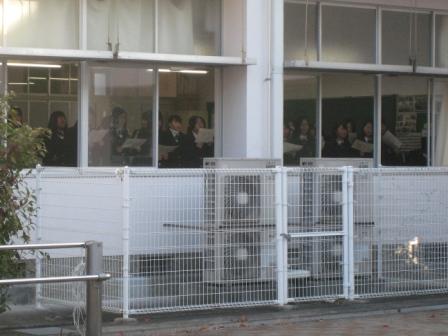 3月1日(日)の卒業式にむけ、朝のSHR前に在校生全員が中庭を向かって唱歌(校歌、蛍の光)の練習を始めました。(2月19日から28日まで行います。)