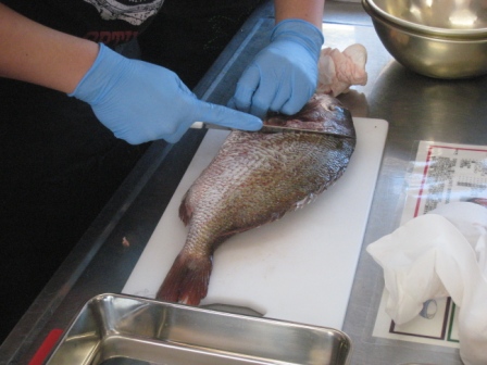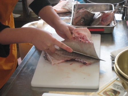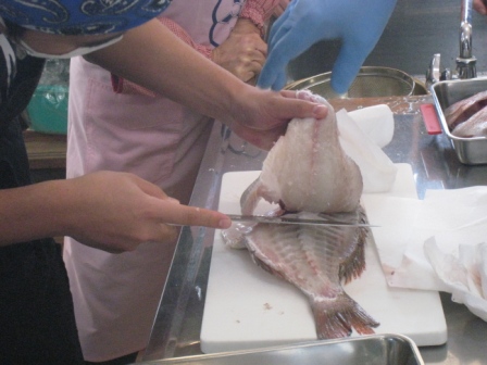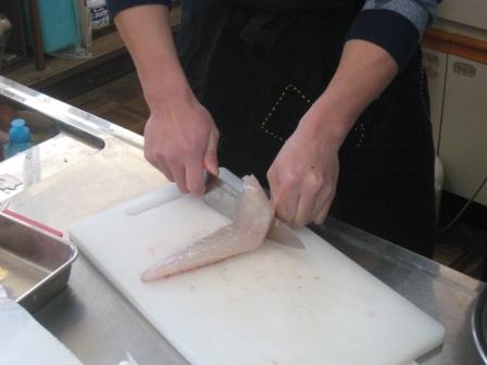 さすが3年生、手慣れた包丁さばきでタイを見事に3枚におろしていました。