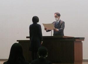 表彰式では、陸上競技部や読書感想文コンクール、ボランティア活動、英単語オリンピックなどで多くの生徒が表彰を受けました。