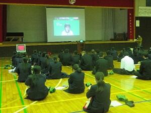 2月の全校朝礼は、オンラインでの開催となりました。今月は山下先生の高校時代の講話でした。高校生の時、寮生活をされていた先生は、食事が出ない毎週末、牛深に帰られる際にヒッチハイクをして帰省したこともあるそうです。その時に様々な大人と出会い、話を聞くことができたことが大きな財産になっているとのこと。人との出会いを通して、言葉や話を自分の中に留めておき、心の本棚を増やしていくこと、そういう出会いを大切にしてほしいということでした。クラス代表意見発表は、1年次2組田中さん、宇左美さんが1年間のまとめと次年度に向けての発表をしてくれました。