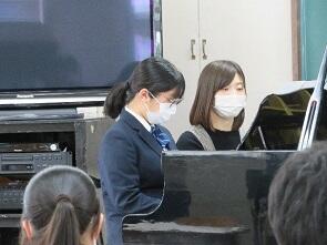 1月17日(月)6限目に3年次器楽選択者9名による「卒業演奏会」が開催されました。2年間の学びの集大成として、ピアノやギターでの演奏を行いました。緊張しながらも最後まで心を込めて演奏する姿に、温かい拍手が送られました。