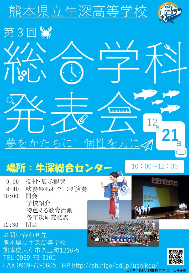 12月21日(土)に、牛深総合センターにて、第3回総合学科発表会を行います。