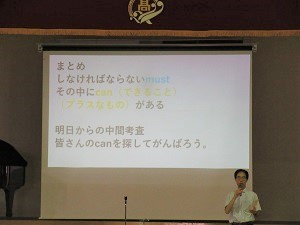講話を聞き、するべきことの中でできることを探し、行動することの大切さを学びました。今、自分にできることを常に考え行動していきます。