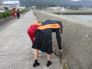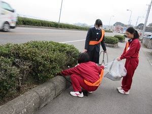 校外のごみ拾い、校内の花壇の手入れやゴミ置き場の整理などを行いました。