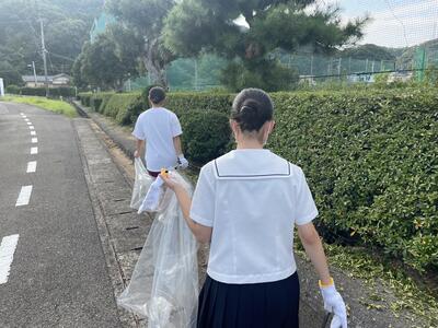 今回も50人近くの生徒が集まり、学校周辺のゴミ拾いを行いました。