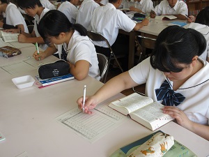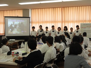研修会には、天草地区の7校から生徒32名、職員11名が参加しました。本校参加者8名のうち、6名は初参加。直前の台風による休校もあり、準備など少し心配しましたが、当日は天候にも恵まれ、無事開催することができました。各自がそれぞれの役割を果たし、さらに会場校としてのおもてなしなど、いきいきと頑張る姿がありました。研修の中で、他校生とも交流することができました。