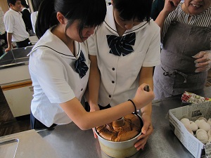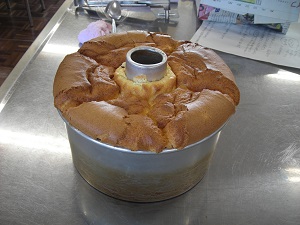 シフォンケーキ作りは、卵を黄身と白身に分けるところやメレンゲの泡立てが難しかったです。家族にも食べさせたいので、家でも作ってみようと思います。松本さんのお話を聞いて、私もいろいろなことに挑戦して、どんな困難にも負けずに最後までやり遂げたいと思いました。