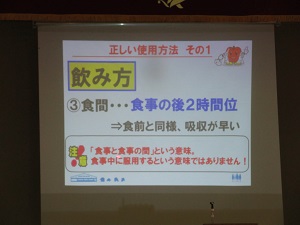次に橋本管理栄養士から「セルフメディケーション」と「登録販売者」についてお話がありました。「自分の健康管理を自ら行うセルフメディケーションの第一歩は、朝食をきちんと摂り、身体と脳のスイッチを入れることが大切。そして、セルフメディケーションを支える専門家として『登録販売者』の資格があり、高校生でも取得が可能である。」ということも教えていただきました。