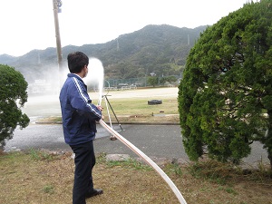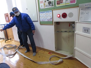 天草広域連合南消防署の方から屋内消火栓(1号消火栓)の使用法について教えていただきました。
