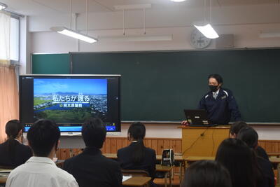 2月26日(5・6・7限目)、本校視聴覚室および教室において、牛深東中学校・牛深中学校・河浦中学校の皆さんにも参加していただき、公務機関合同業務説明会を実施しました。
