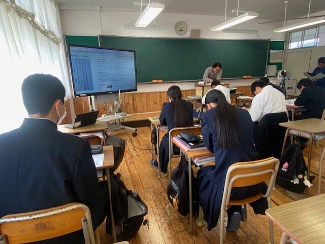 本日、2年次文理コースの「歴史総合」の授業で、天草市芸術文化協会の河野さんを講師にお招きし、「幕末の牛深の歴史」をテーマに特別授業を行いました。