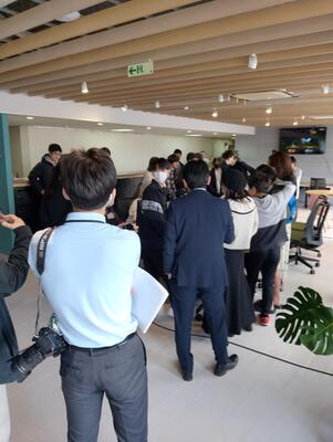 映画制作にあたって、牛深ハイヤ節の伝承に取り組む高校生の姿をワンシーンに取り入れたいとの思いを持っておられ、郷土芸能部の練習風景を視察されました。