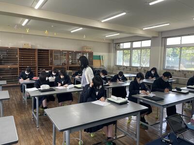 1時間目には授業参観を行いました。(写真は1年次の音楽と書道の授業の様子)