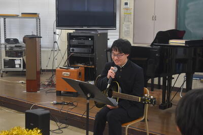 選択者2名の生徒による計6曲のあっという間の卒業演奏会でしたが、伸びやかな声の独唱と緊張した面持ちで奏でたビアノとギター。たくさんの拍手に包まれた卒業演奏会となりました。