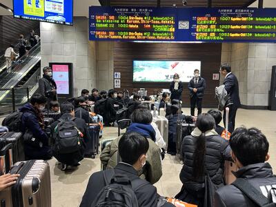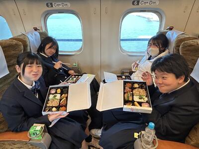 1月13日(火)、2年次生は関西方面への修学旅行1日目を無事に終えました。早朝に本校を出発し、熊本駅から新幹線で大阪へ向かいました。昼食は新幹線の中でお弁当を食べました。